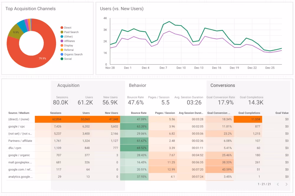 Used for creating customized, interactive reports and dashboards that integrate with various data sources, Looker Studio is ideal for companies that use the full Google suite of services.