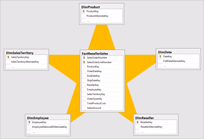 The go-to approach in warehousing is the star schema: a central fact table (with transactional data) linked to dimension tables (with categories like date, product, customer, etc.). This denormalized design reduces the number of joins needed and simplifies queries.