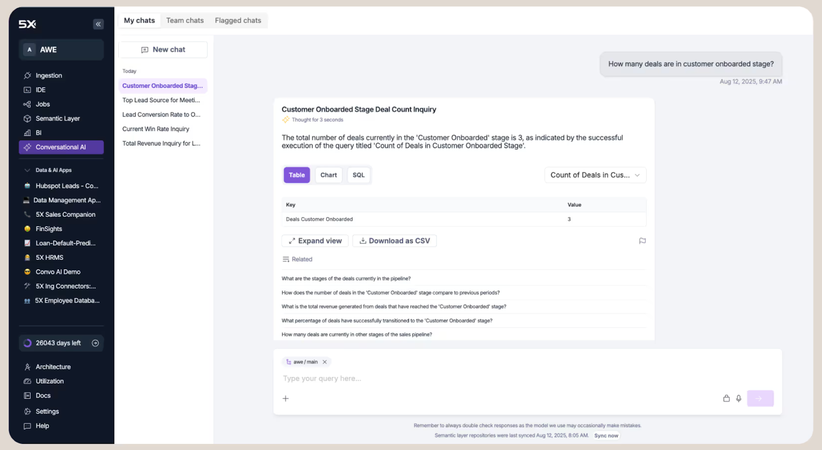 With automatic PII detection, end-to-end encryption, governed pipelines, and a built-in semantic layer, 5X replaces technical sprawl with a single, compliant environment that unifies EHR, claims, operational, and clinical data. 5X gives teams trusted metrics, consistent logic, and real-time visibility, without needing a full data engineering arm.