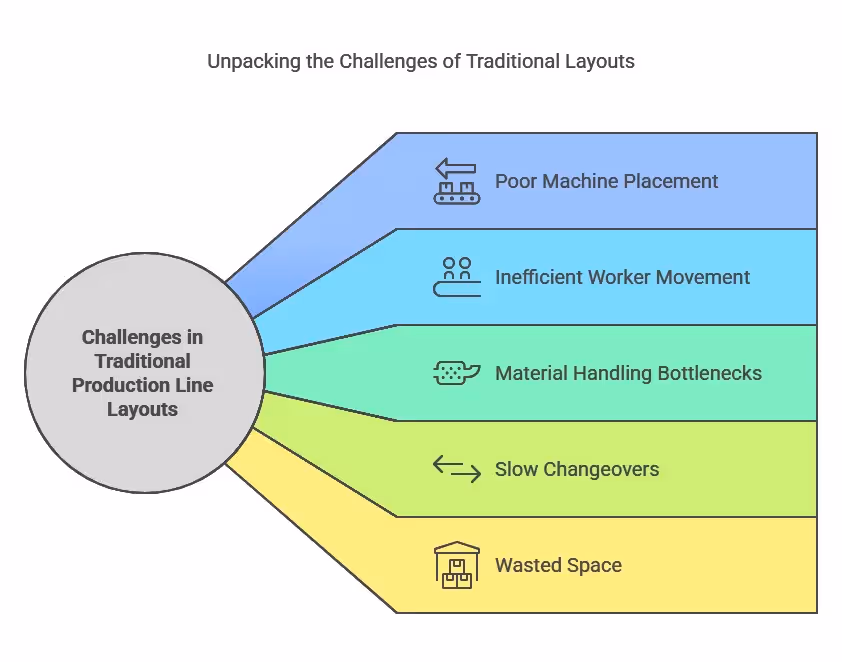 Most production line layouts were designed in a different era, when demand was steady, product lines were limited, and changes were rare.