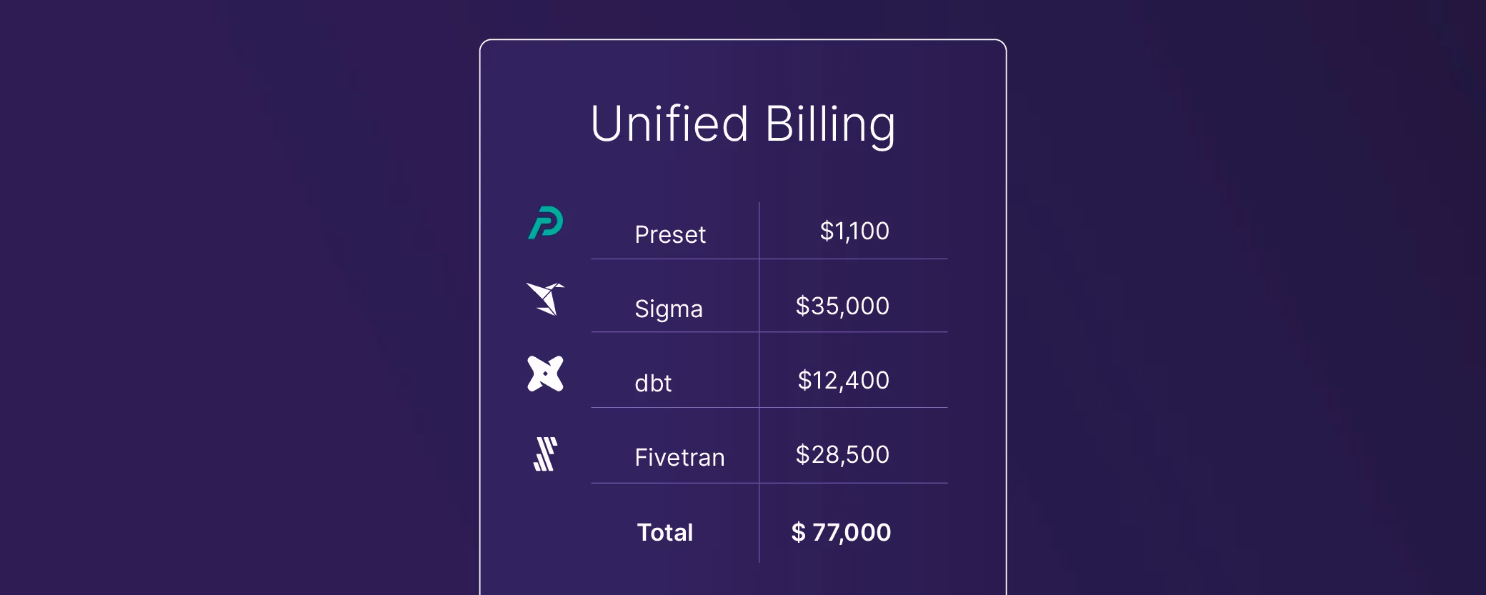 Data platform spends are unpredictable. With multiple data tools and different pricing structures, your budget can unnoticeably slip through the cracks.