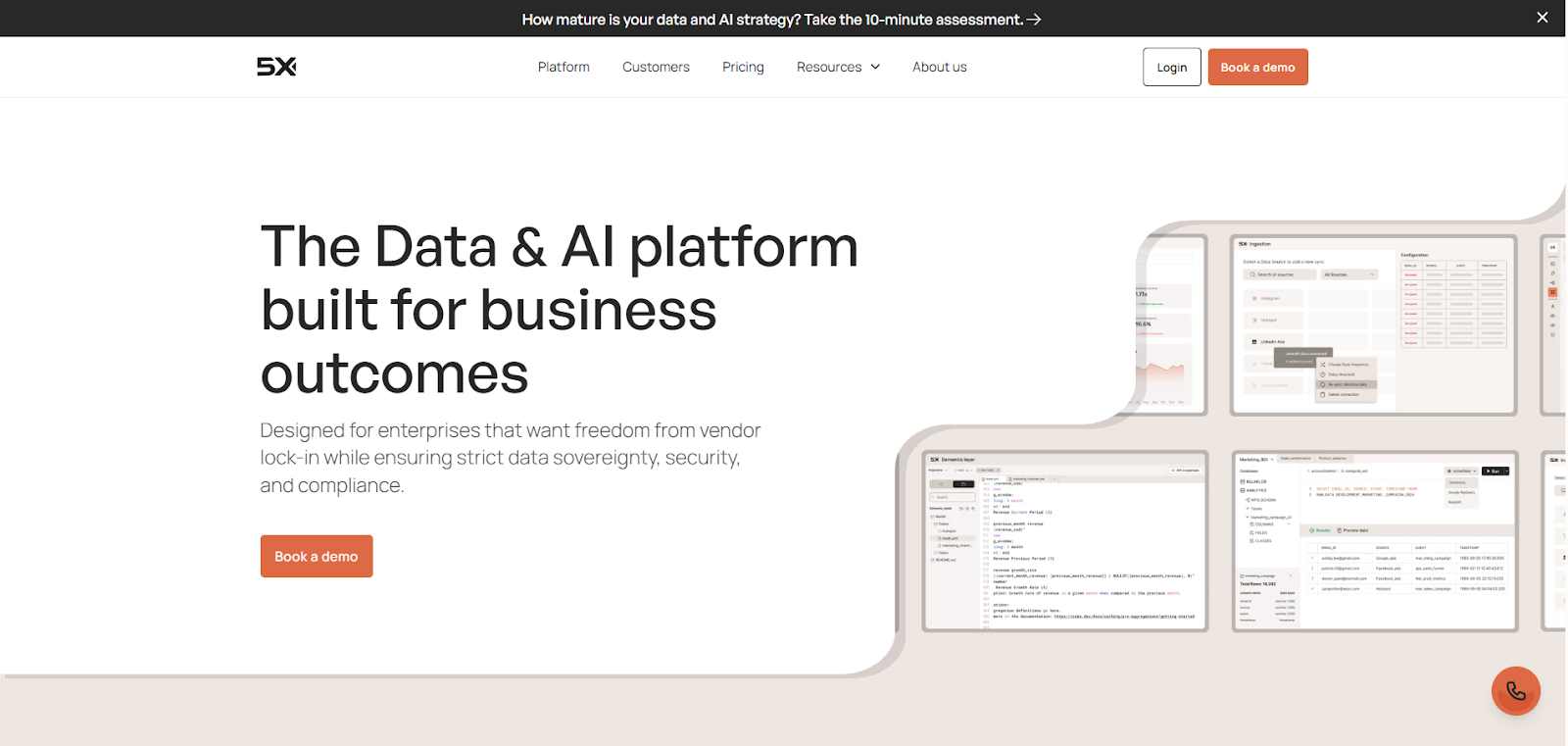 - End-to-end value: the semantic layer is not stand-alone but part of the 5X platform (ingestion, transformation, BI, AI) so integrations are smoother