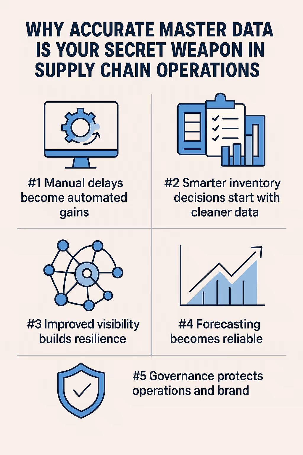 - Most supply chains break not from poor tools but from messy, mismatched master data across systems