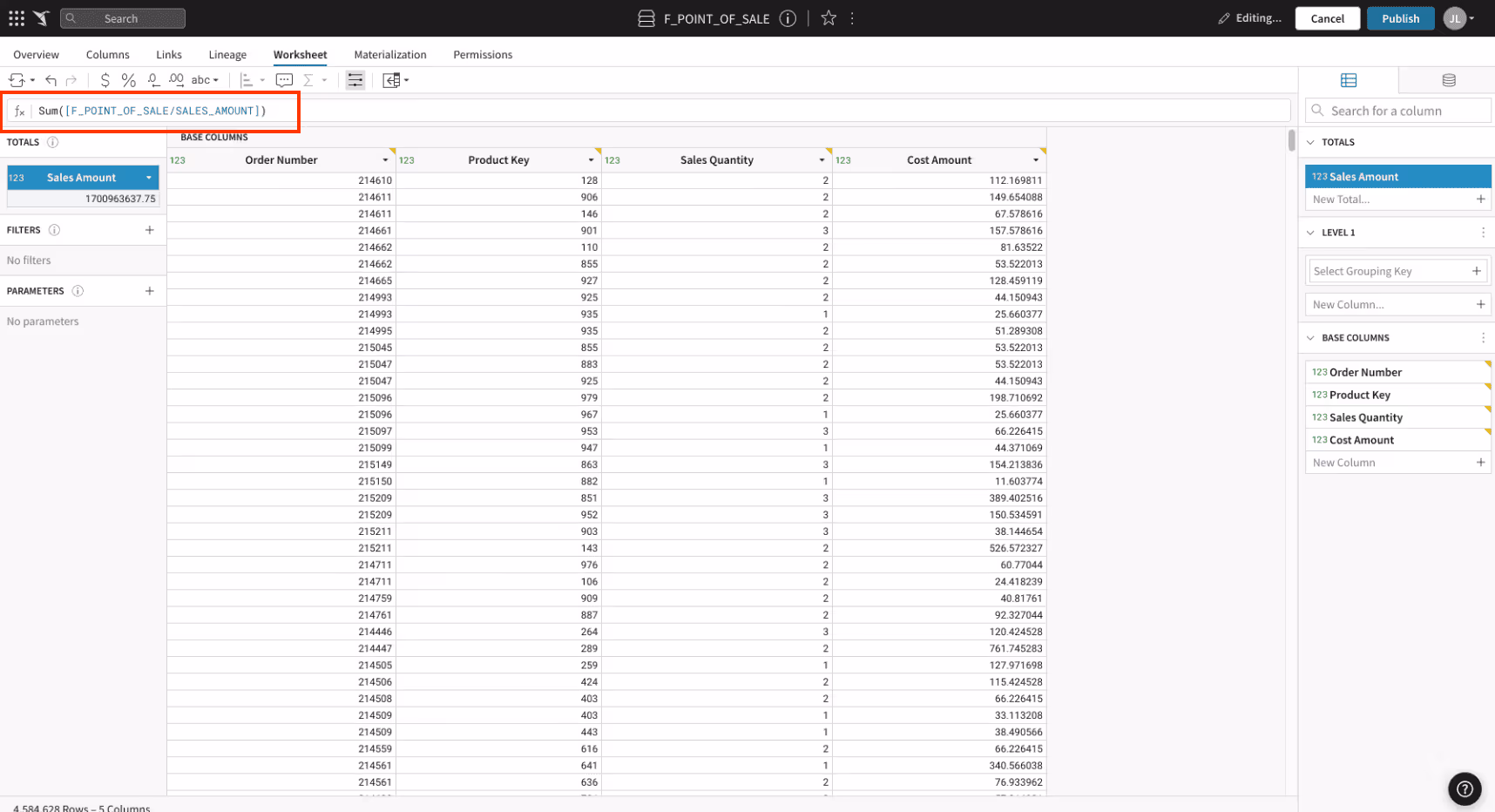 You can manipulate your raw data, such as changing data type, format, and parse out JSON easily via Sigma’s Datasets feature. Create a new calculated field simply by inserting a column and write Excel formula.
